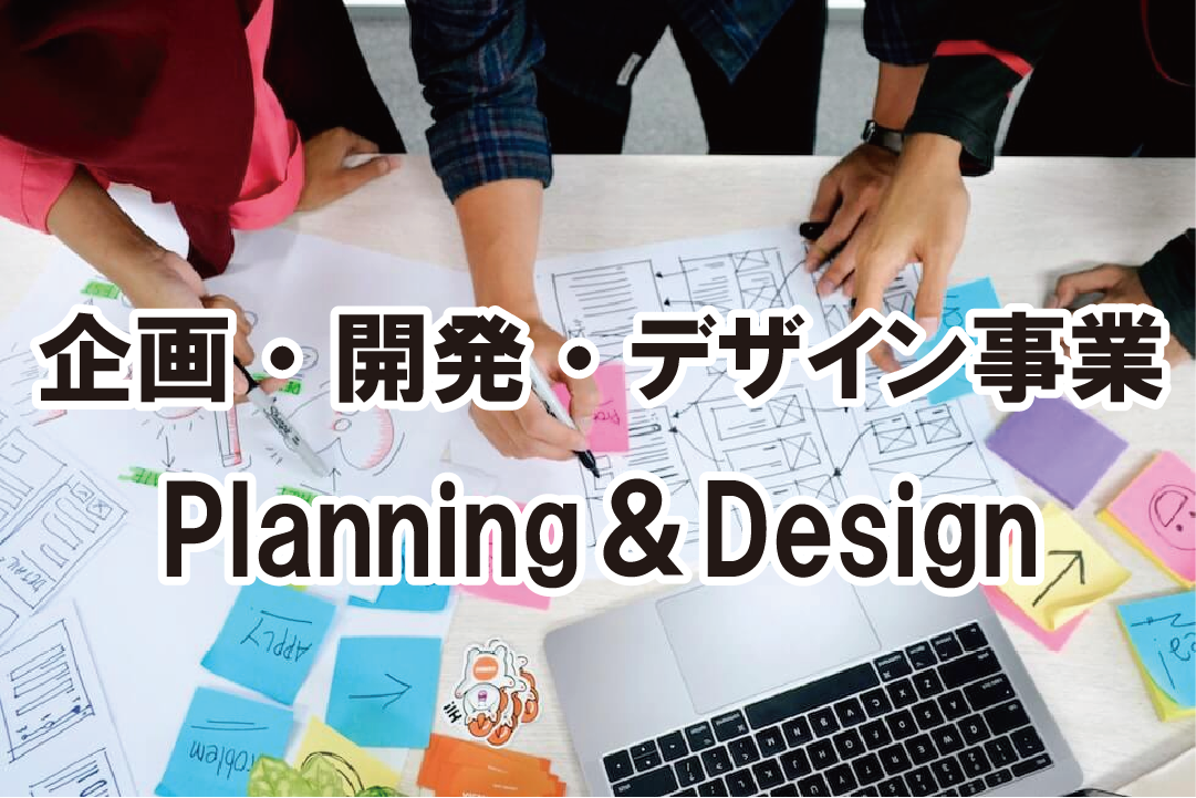新たなサービスや商品を世に送り出すための企画立案、商業デザイン、ウェブサイトや販促物の制作、三次元データ制作や三次元プリンターによる工業デザインやモック製作を行います。